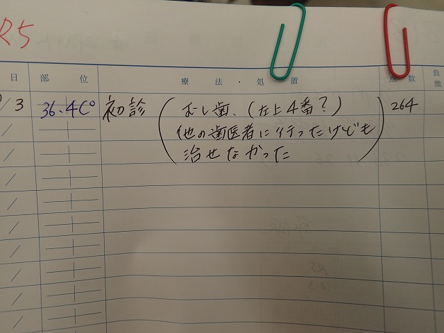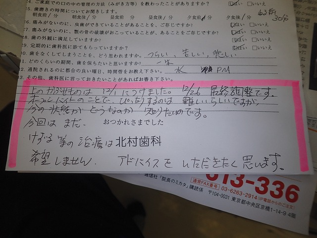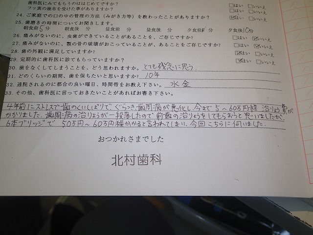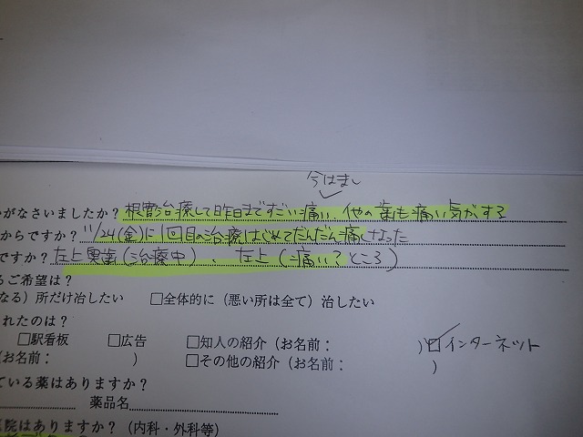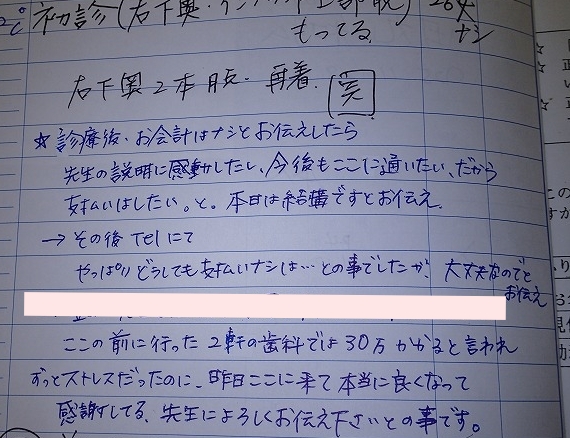受付でのスタッフメモを添付してご紹介します。