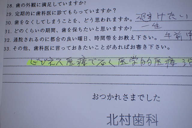 ビジネスをしたほしくない旨の起算が問診票にあります。