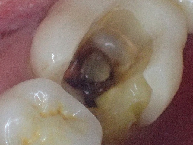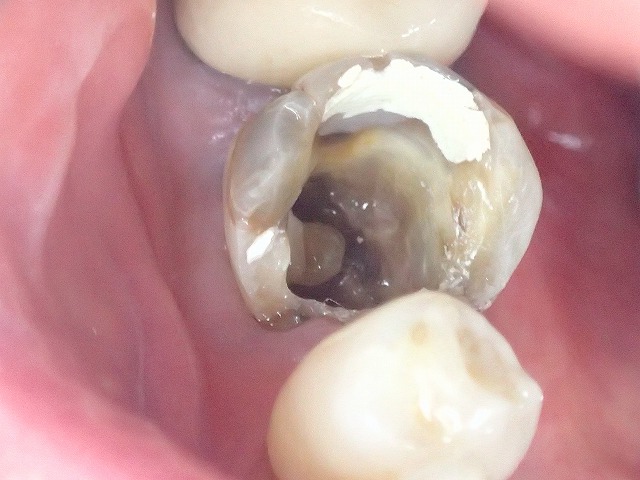 遠心部分から虫歯が見られます。