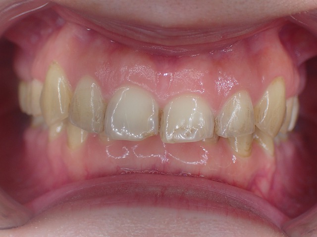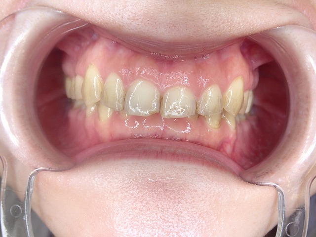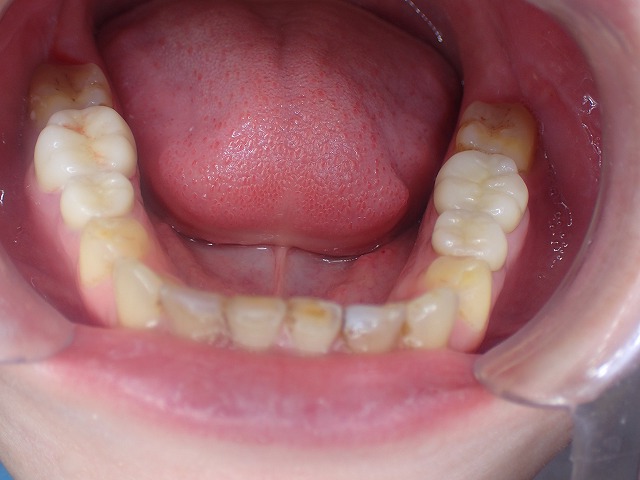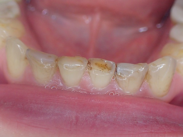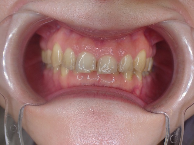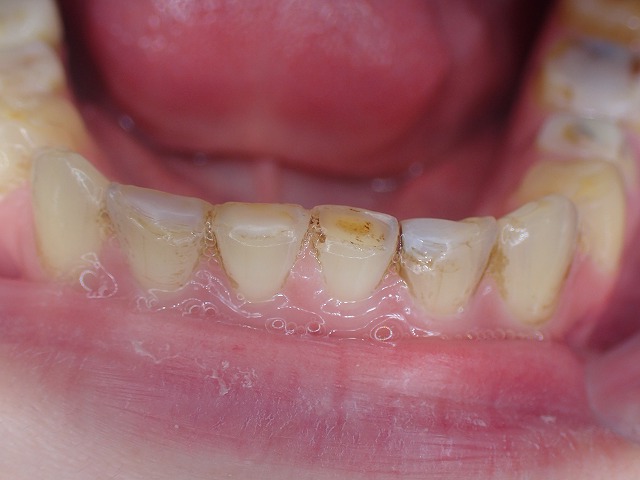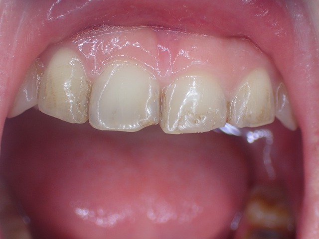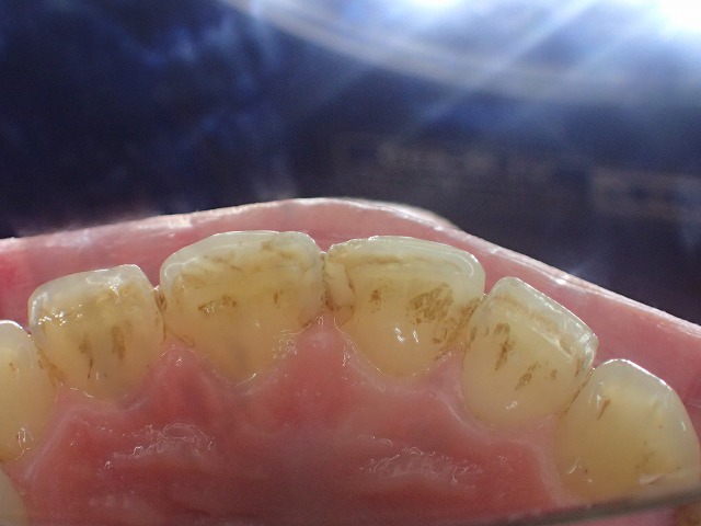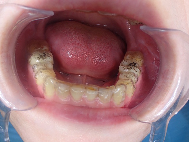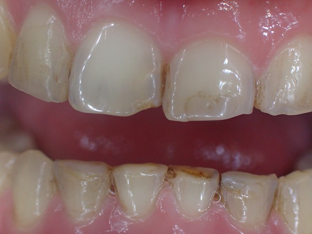 かなりの歯ぎしりで、前歯がバリバリに削れています。
