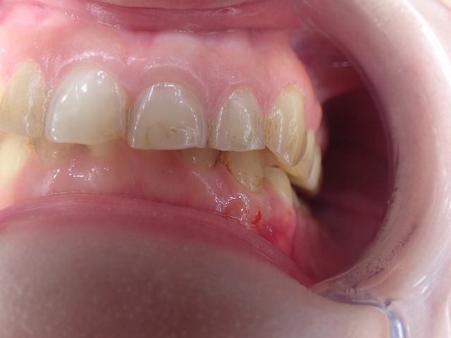 かなり深い過蓋咬合です。(咬み合わせが深い)